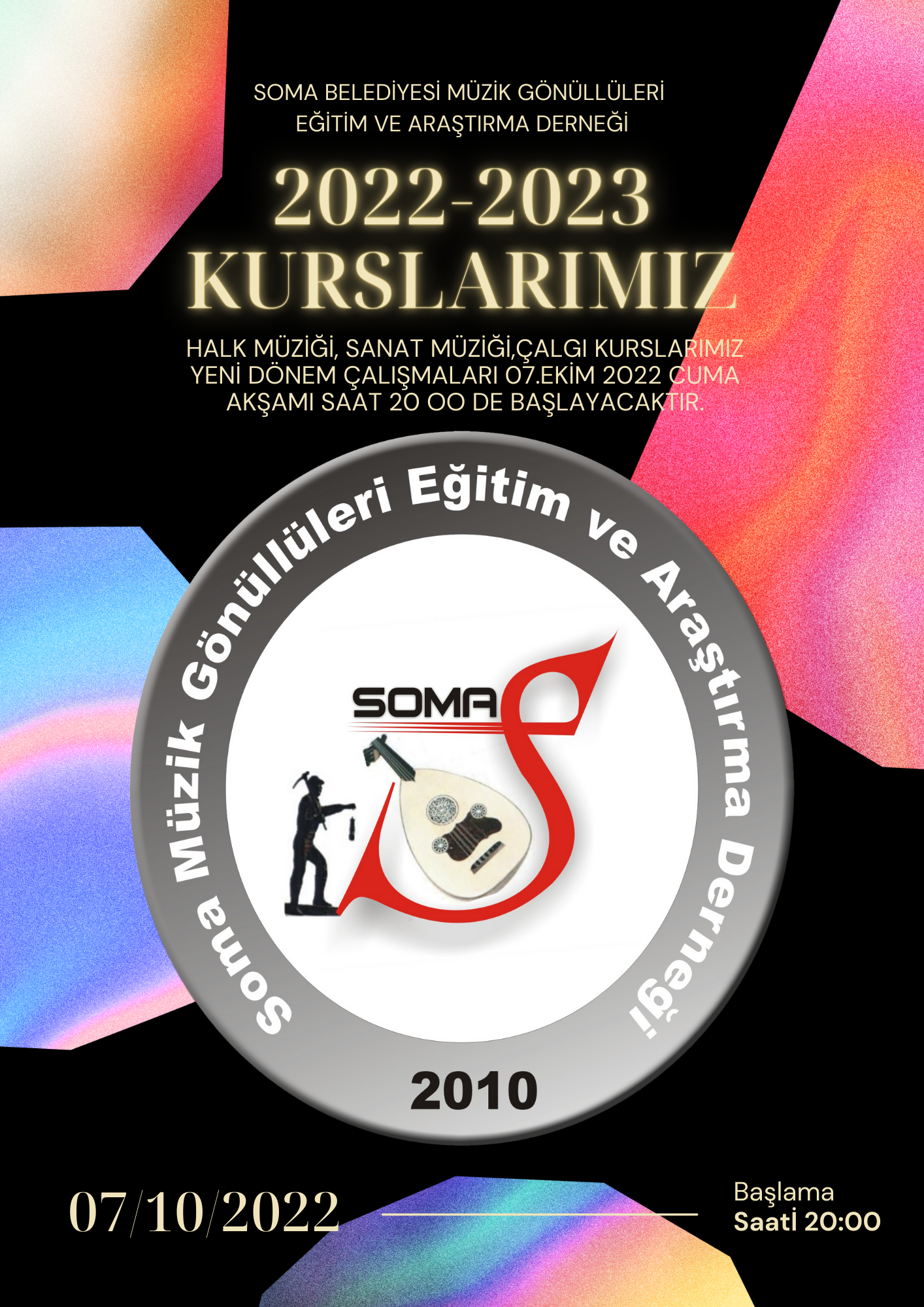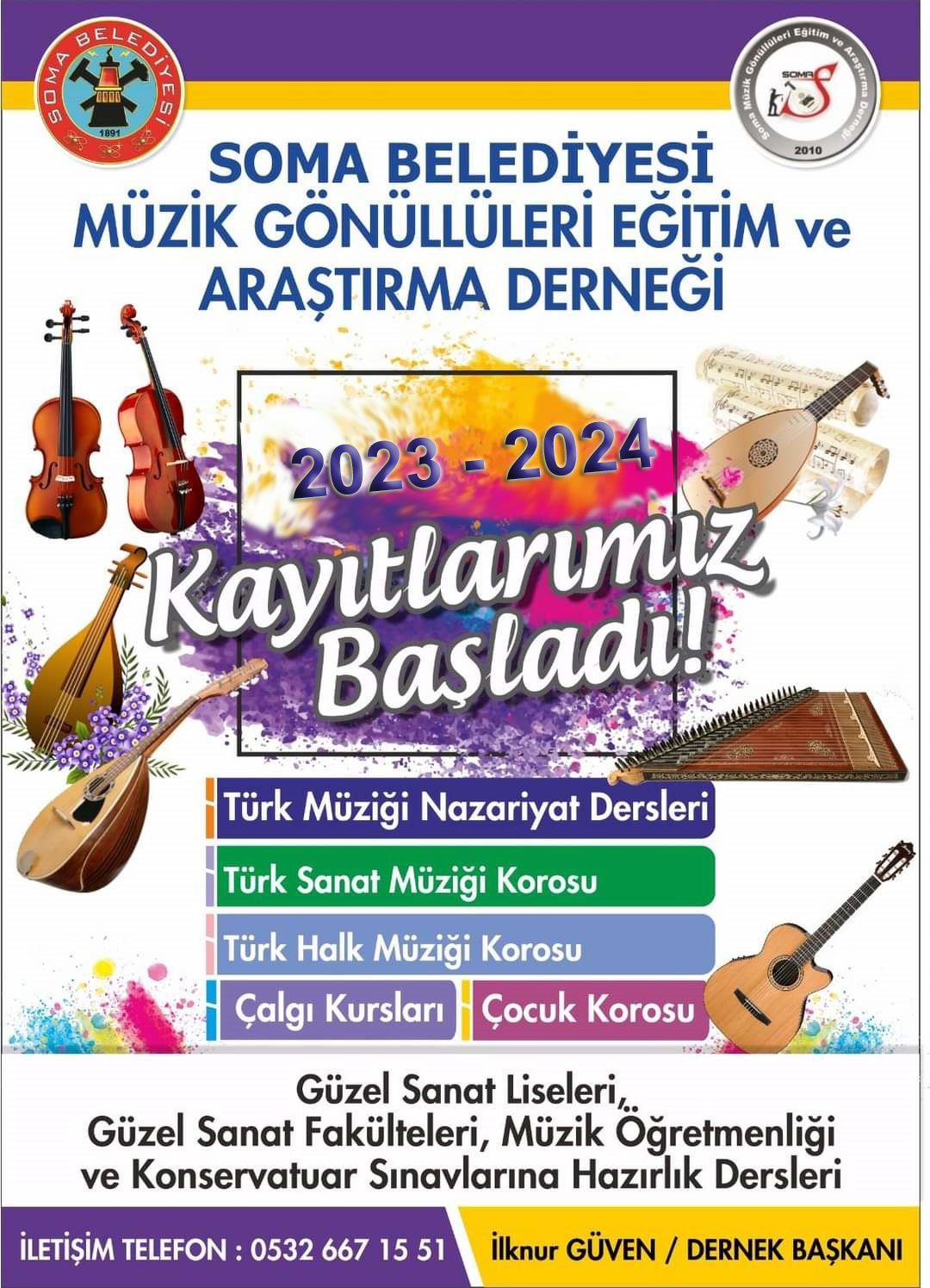 Soma Belediyesi Müzik Gönüllüleri Eğitim ve Araştırma Derneği olarak çalışmalarımız aralıksız devam ediyor.Müziğe sanata ilgi duyan 7 den 70'e herkesi derneğimize bekliyoruz.Dernek Y.K.bşk