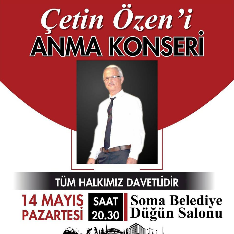 Dernek Başkanı İlknur Güven, “14 Mayıs Pazartesi günü tüm müzik dostlarını ve Özen dostlarını konsere davet etti. 14 Mayıs Pazartesi günü Saat 20.30’da Soma Belediyesi Düğün Salonunda gerçekleşecek konser Merhum Müzik Dsotu güzel insan Çetin Özen için yapılacak. Soma Belediye Başkanı Ali Tulup’un da katılımı beklenen koser ücretsiz olup tüm somalılar davetlidir”dedi.